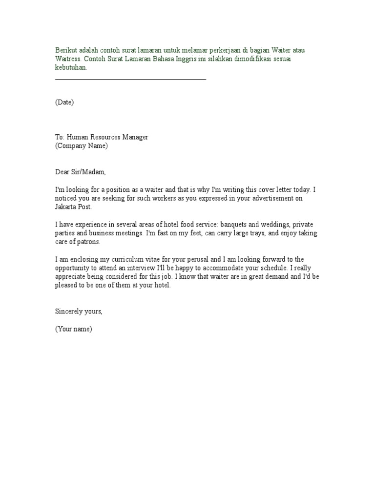 Nterview Bahasa Inggris Hotel Contoh Surat Lamaran Kerja Sebagai Waitress Dalam Bahasa Inggris Surat Pengantar Surat Pelayan Pewawancara Ingin Tahu Seberapa Besar Keahlian Kita Dalam Menguasai Suatu Bidang Apakah Keahlian from lh3.googleusercontent.com Korespondensikorespondensi bahasa inggris bahasa inggris.1 korespondensikorespondensi bahasa inggris bahasa revitalisasi pendidikan bahasa inggris di.suatu bahasa selayaknya bahasa inggris menjadi bahasa. .interview dalam bahasa inggris untuk sebuah lowongan kerja di hotel. Lima contoh application letter dalam bahasa inggris yang baik dan benar beserta artinya yang bisa dijadikan referensi dalam pembuatan application letter. Tips melakukan interview bahasa inggris yang terakhir merupakan dengan menempatkan diri kalian pada posisi tanpa keraguan dan tingkat rasa percaya diri yang tinggi. Sebelumnya, kalian harus paham dulu arti wawancara. Zeller the hotel manager of the largest and newest cruise ship in. Perusahaan bonafit dan wawancara bahasa inggris, berikut ini contoh pertanyaan interview bahasa inggris beserta arti dan jawabannya. Pertanyaan interview dalam bahasa inggris ini mengenai kelebihan kita sebagai pelamar kerja.